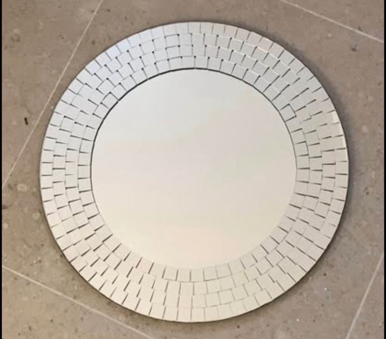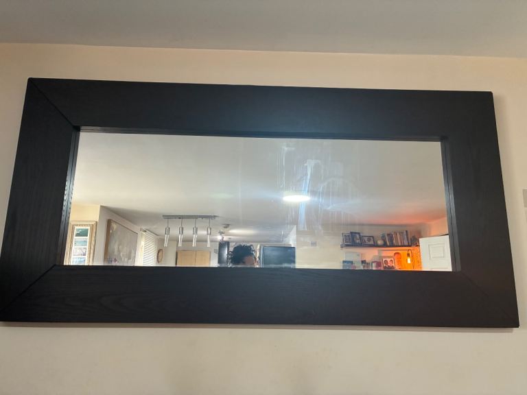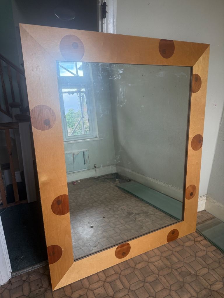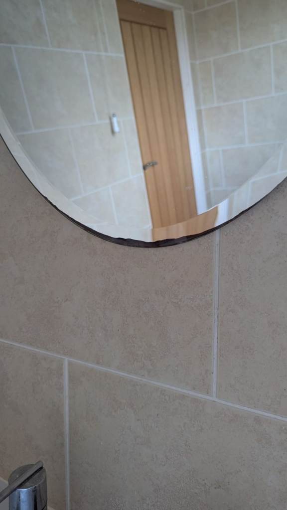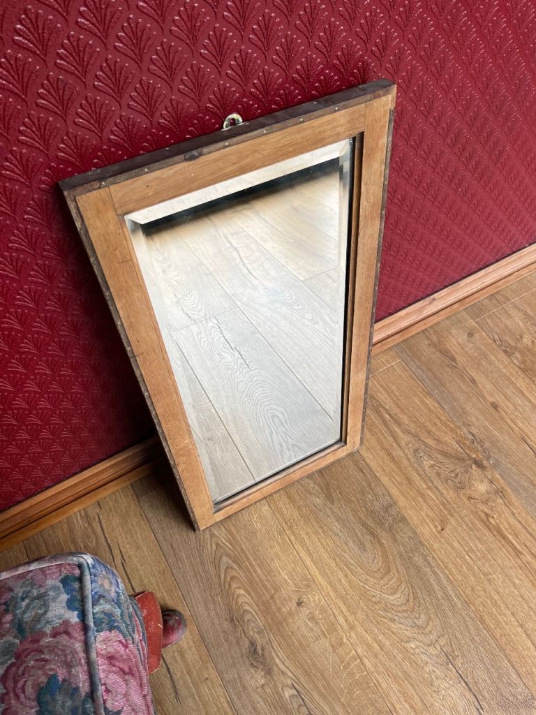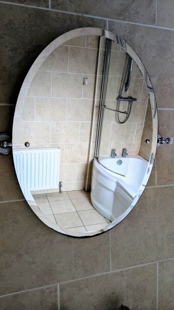 Oval-shaped mirror with bevelled edge. Some wear at the bottom of the mirror as shown in photos. Collection only.