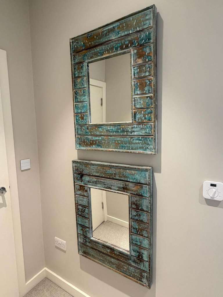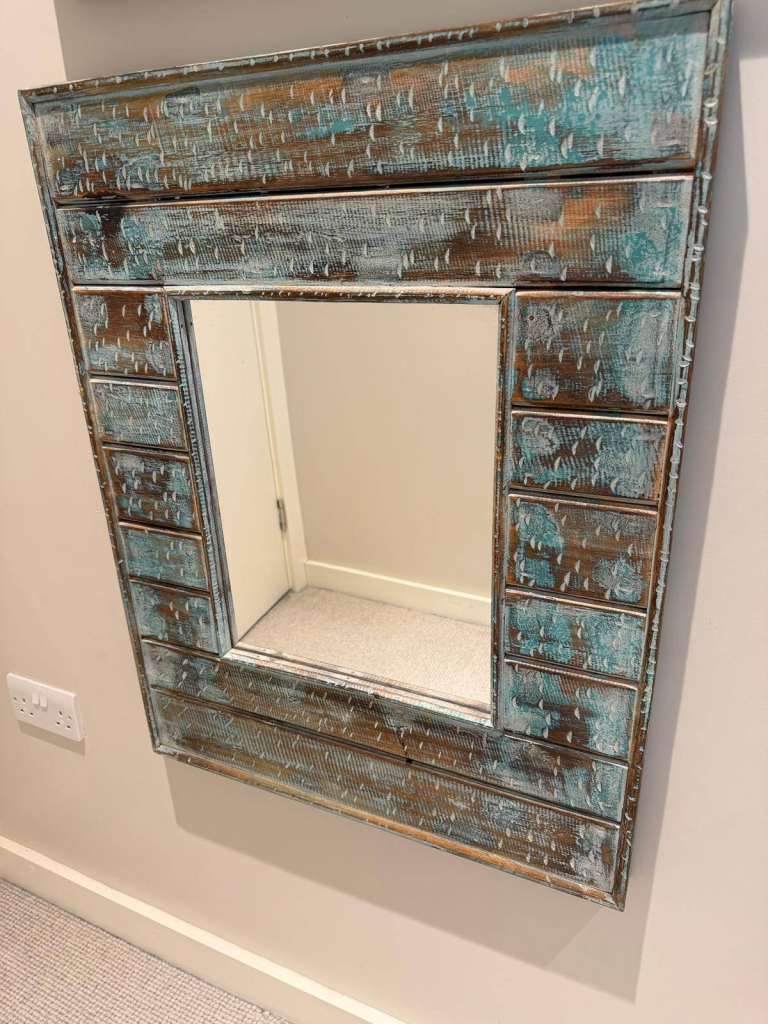 Posting for 11+ yearsPair of Rustic Wooden Wall Mirrors – Turquoise/Wood