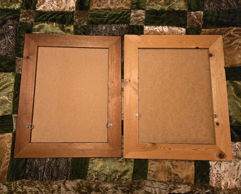 One on left 42cm w x 52 cm h, one on right 43cm w x 53 cm h. £8 each or £12 for the two. Collection only, thank you😊
