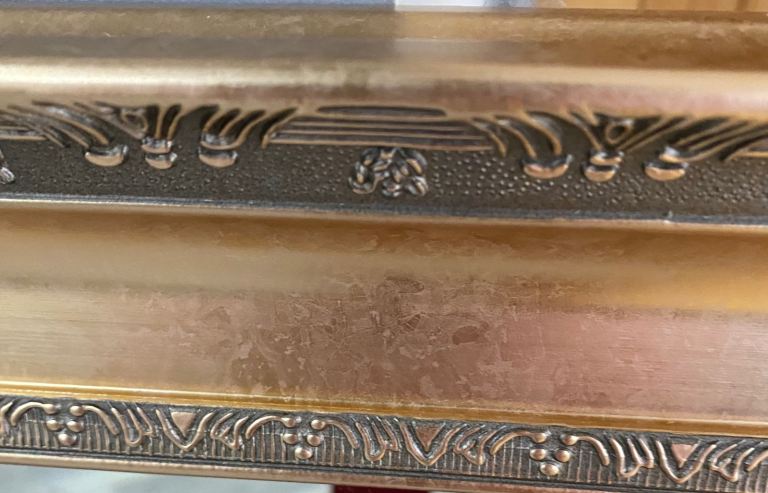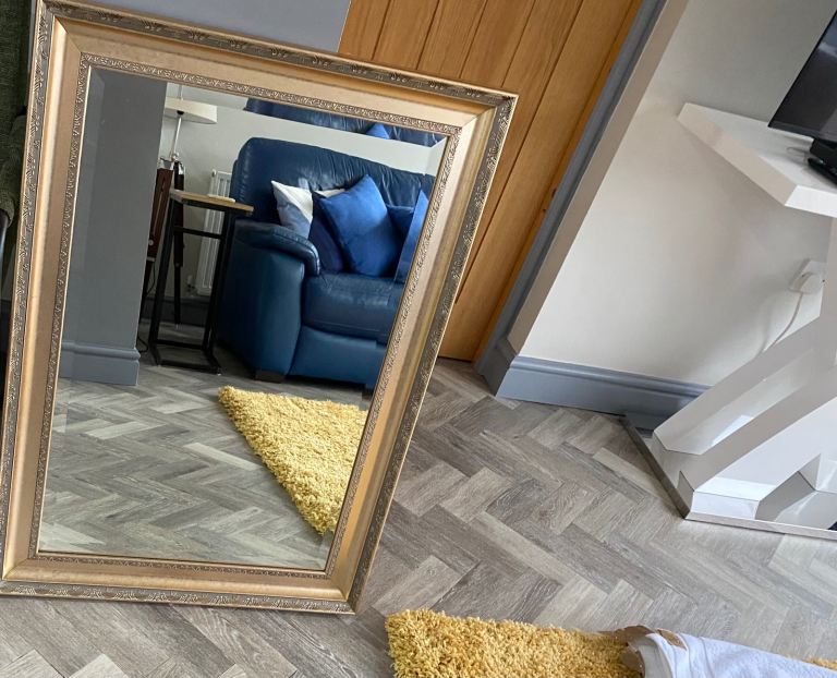 Posting for under a monthRectangle mirror with gold coloured detail around edge
