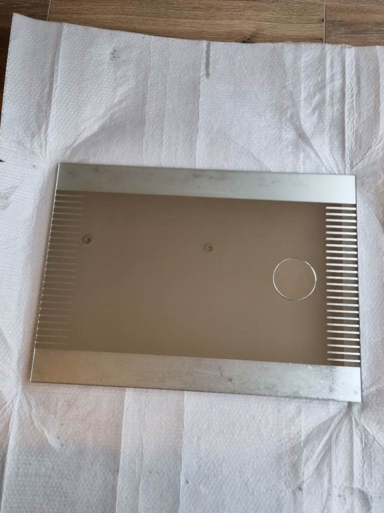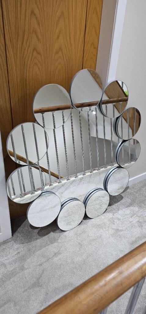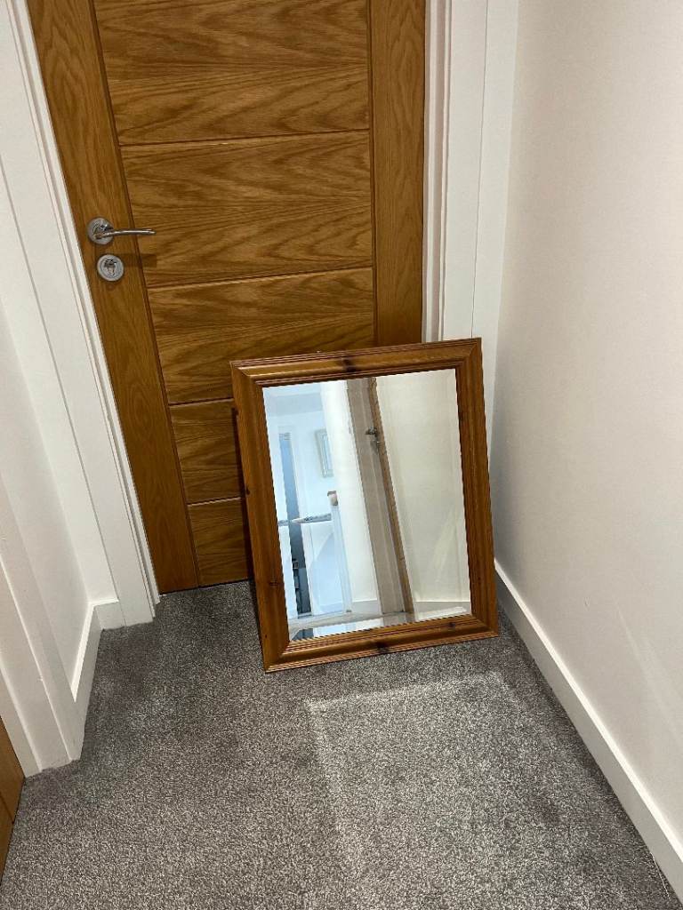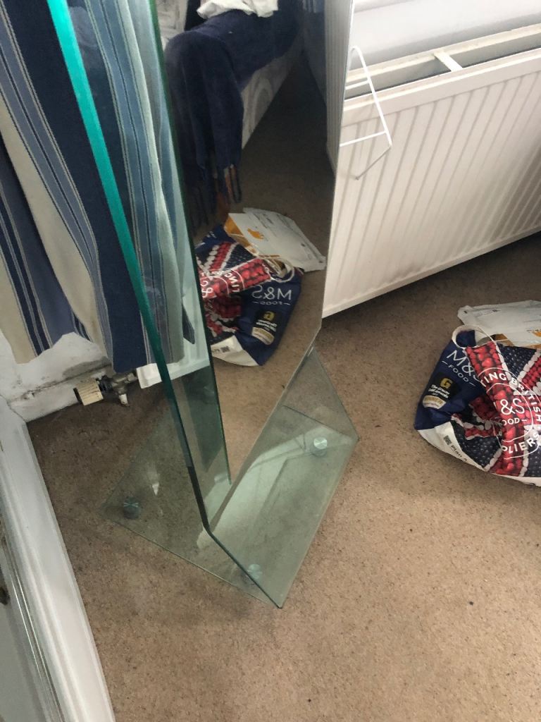 Modern full length mirror with glass surround.