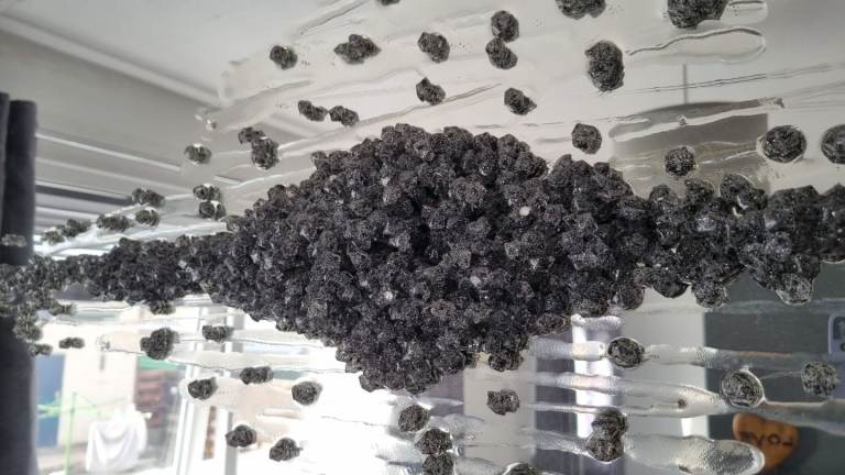 Stunning large bevelled edge mirror with decorative dark grey art glass design on it. 120 cm x 60 cm. A real statement piece only £60