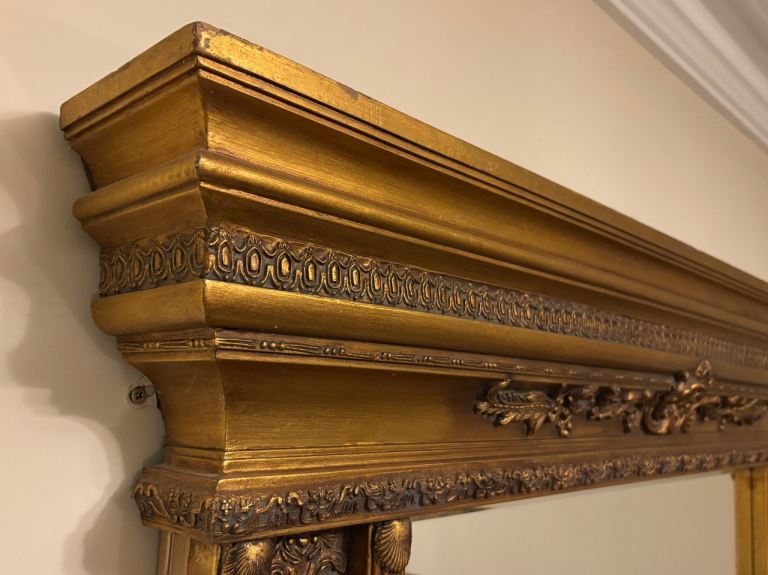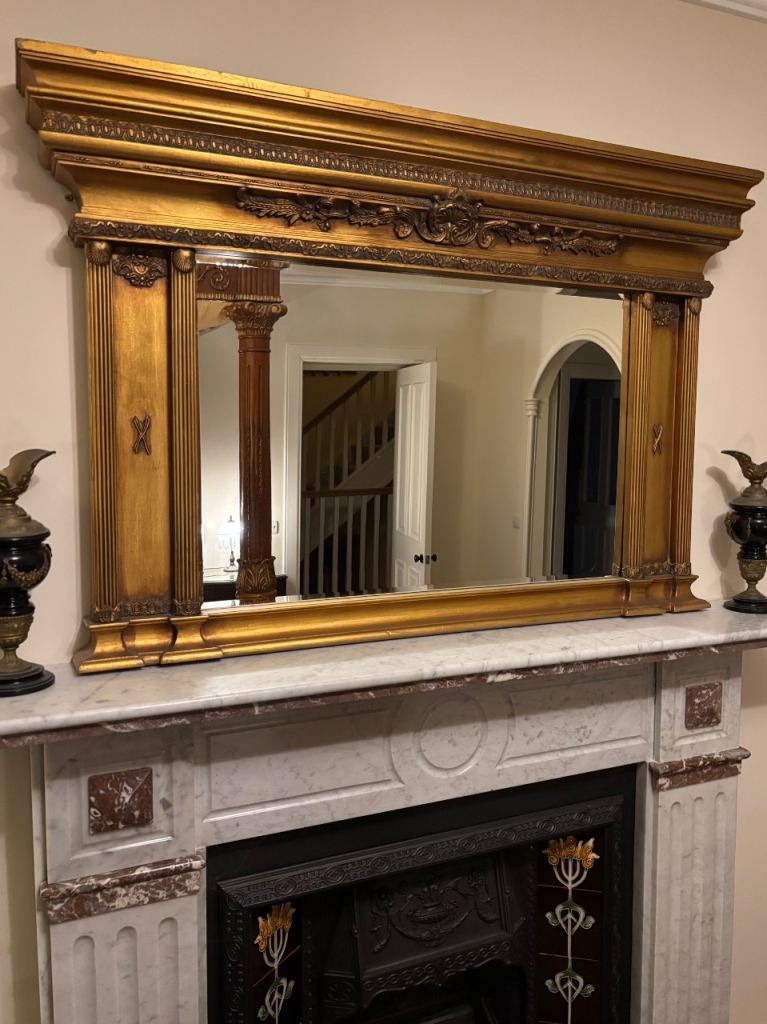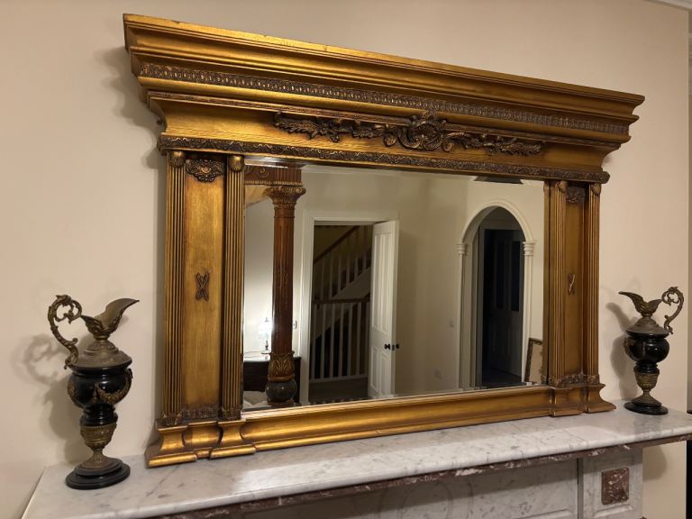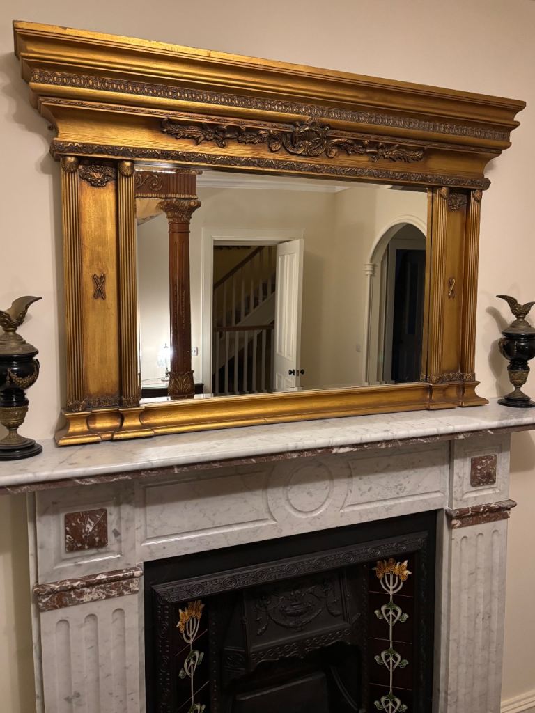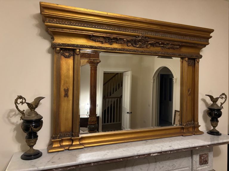 Stunning Large Regency Style Gilt Mirror With Classic Coloums Bevvelled Glass Beautiful