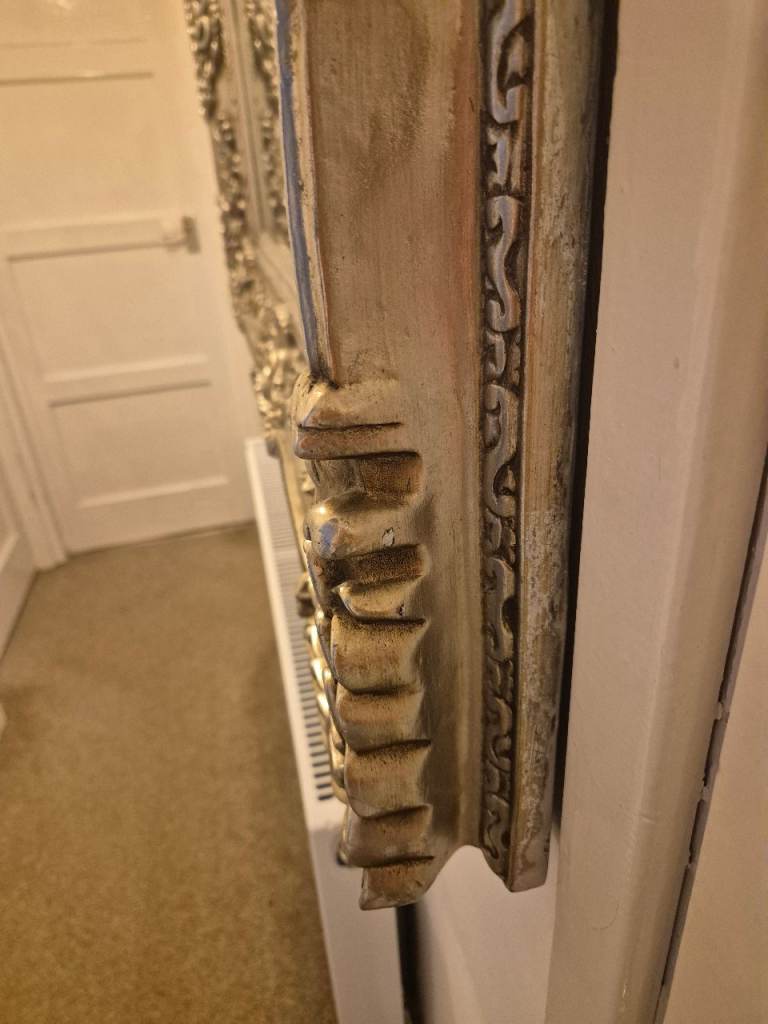 4 Available, (one is without glass - Frame only). Ideal for a Salon or any large rooms. Like new. Solid, heavy, beautiful.