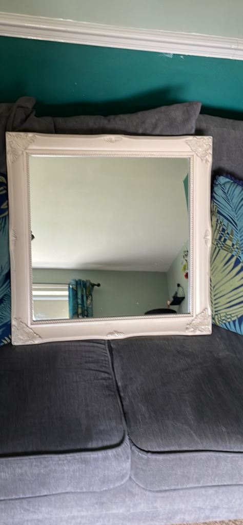 The rectangular mirror has an ornate frame, measuring approximately 70cm x 50cm.