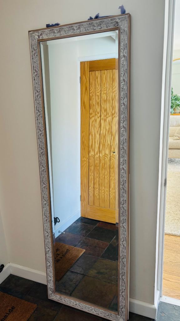 Vintage full length wall mirror In a silver / platinum colour. Measurements approx 42cm wide x 164cm tall. Excellent condition.