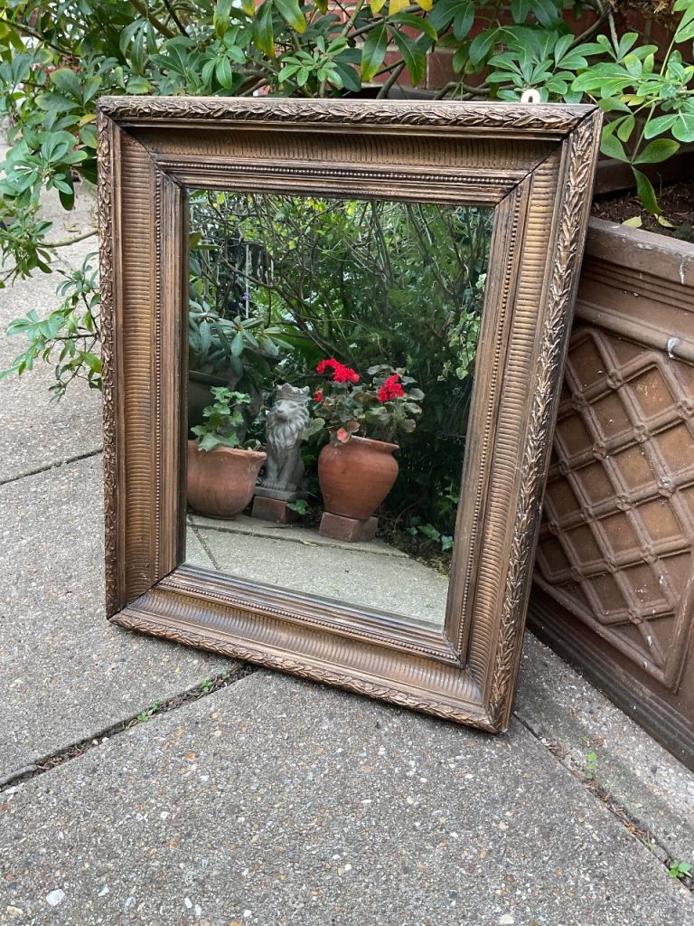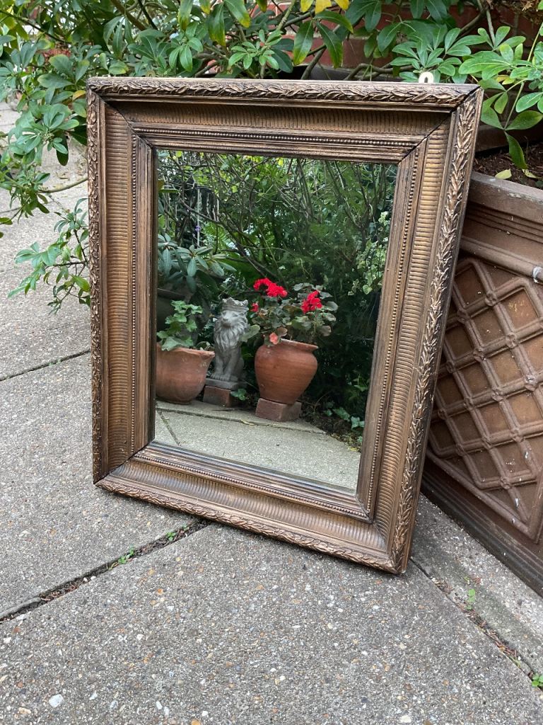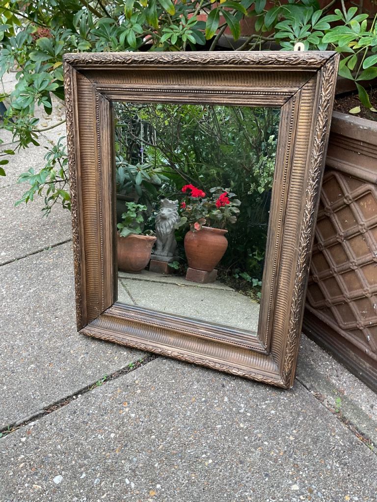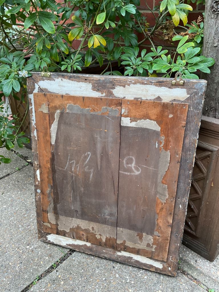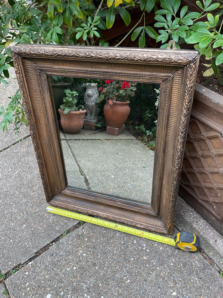FOR SALE IS A LOVELY VINTAGE WOOD WALL MIRROR WITH OLD WOODEN BACKING.