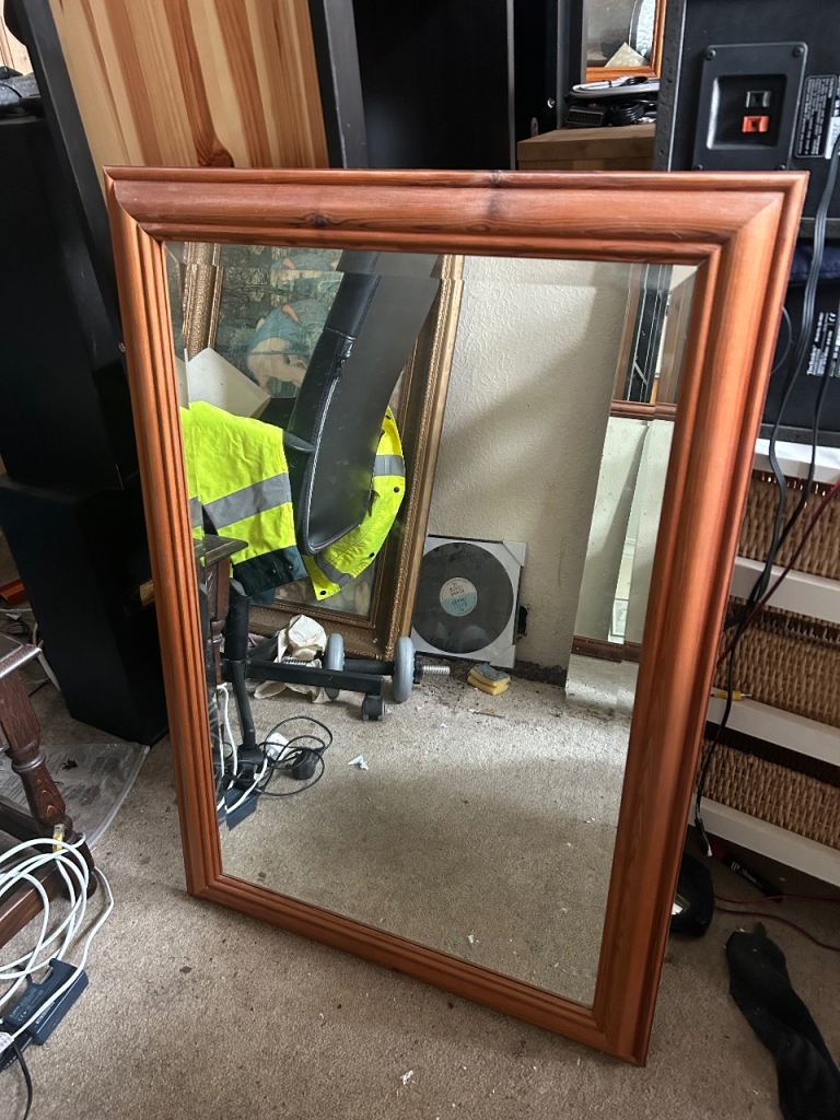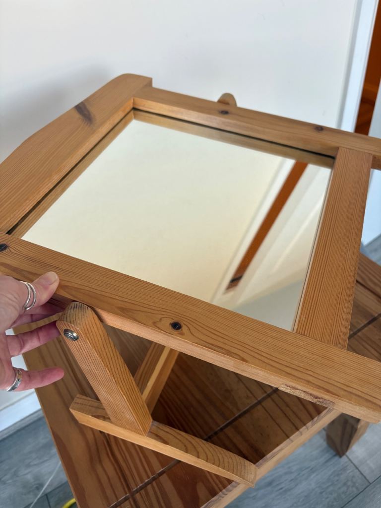 Classic wooden pine dressing table mirror in good condition. Features a tilting mechanism so you can easily adjust the angle.