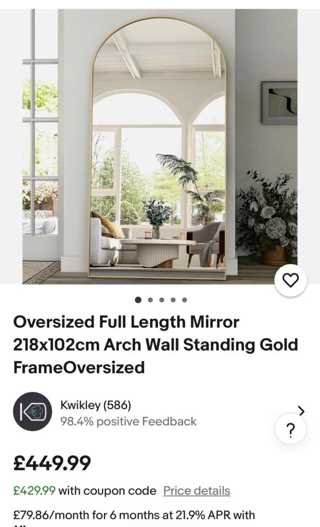 XXL large arched mirror - free standing or wall mounted