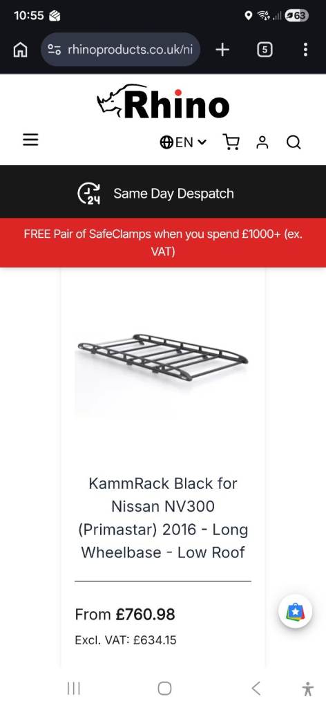 Rhino large roof racks with rollers 1440mm x 2900mm
