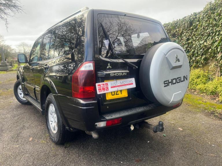 MITSUBISHI SHOGUN 3.2 DI-D FIELD IN A BLACK EXTERIOR COLOUR WITH BLACK LEATHER INTERIOR WITH DARK BROWN TRIMS... VERY SPECIAL FIELD EDITION... SPACIOUS 7 SEATER VEHICLE... 2 REMOTE KEYS... COMES WITH 12 MONTHS MOT... 1 PREVIOUS OWNER... A COMPREHENSIVE SERVICE HISTORY... FEATURING FRONT ELECTRIC SEATS... FOG LIGHTS... TOW BAR... MITSUBISHI CD FM RADIO... ROOF BARS... TRIP COMPUTER... CLIMATE CONTROL WITH FRONT AND REAR HEATED WINDOWS WITH REAR CLIMATE CONTROLS... HEADLIGHT ADJUSTMENT CONTROL... ELECTRIC ADJUSTABLE SIDE FOLDING MIRRORS... ALL ROUND ELECTRIC WINDOWS... CUP HOLDERS... COMES WITH A LIKE BRAND NEW SPARE WHEEL ON THE BACK... CENTRAL LOCKING DOOR CONTROL... ALLOY WHEELS WITH DECENT TREAD ALL ROUND... WARRANTY INCLUDED... ALL PART EXCHANGES ARE WELCOME... OPTIONAL NATIONWIDE DELIVERY EXTRA... BOOK-INS AND VIDEO VIEWINGS ARE AVAILABLE... TEST DRIVES ARE WELCOME... FOR MORE INFORMATION CALL US TODAY ON 07309185330.