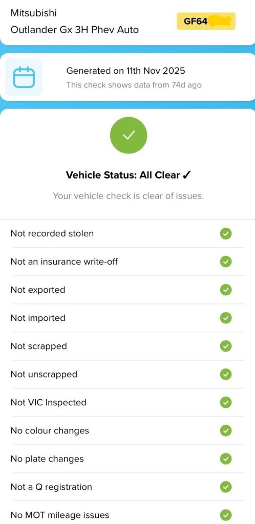 This vehicle has not been reported stolen, scrapped, exported or flagged as unroadworthy.