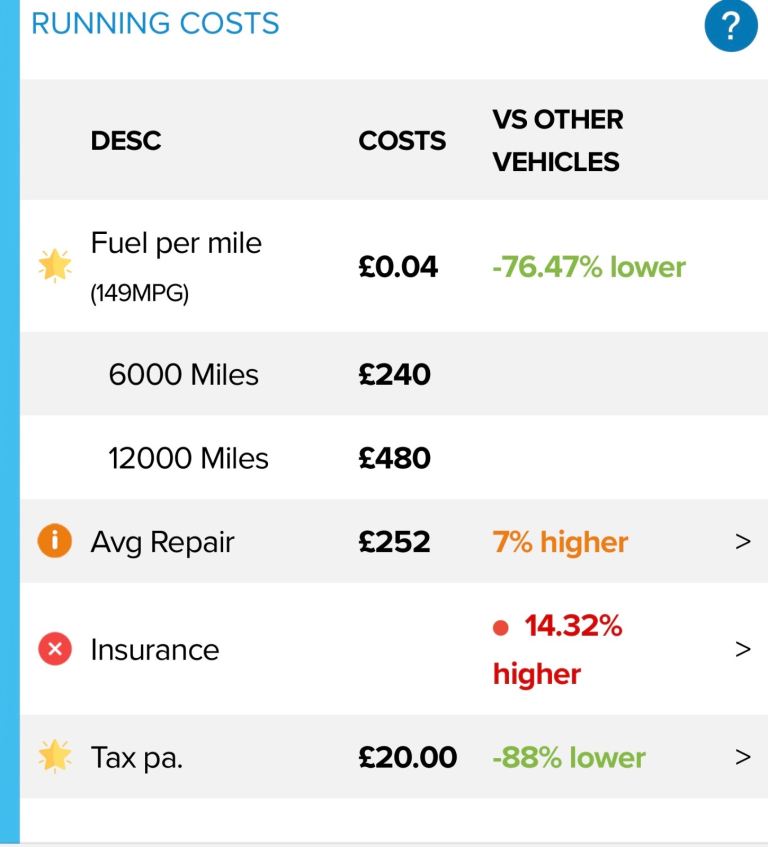 * Cheap to run ( Low £20 Road tax and Insurance).