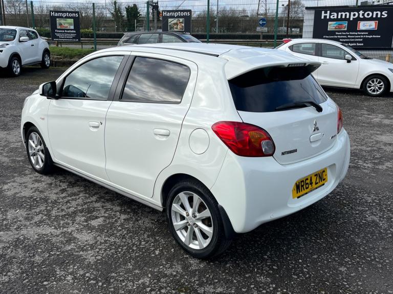 2015 64 MITSUBISHI MIRAGE 1.2 MODEL 3 5dr HATCHBACK - ONLY 58,000 MILES WITH SERVICE HISTORY - MOT JULY 2026.. The car IS IN THE PROCESS OF HAVING A FRESH MOT AND will be serviced before sale. Here we have for sale in GOOD condition for year and miles inside and out and drives superb with any trial or inspection more than welcome our MITSUBISHI MIRAGE 1.2 MODEL 3 5dr. The car comes with ALLOY WHEELS, LOCKING WHEEL NUTS, STOP START TECHNOLOGY, air con, Bookpack, STUNNING WHITE Paintwork, SERVICE HISTORY, power steering, 1 key including central locking key, low tax £20.00, CUP HOLDERS, low insurance, full electric pack, r/c/l and much more. A NICE example of a MITSUBISHI MIRAGE 1.2 MODEL 3 that has come into our local main dealership. The car has done 58,000 miles and has Service History. The car will also come with 3 Months Warranty with ourselves. Excellent value car with SERVICE HISTORY. All cars come with 3 Months Warranty. Warranties can be extended at small extra costs. Temp Insurance can be give on all cars at small costs. Delivery available nationwide at extra small costs. Finance available at very low costs. Please ask about our finance deals. These cars are very low insurance and are great little cars for new drivers and small runabouts. ring for more details or to book a test drive Part Exchange Welcome cash / bank transfer payments accepted / CREDIT AND DEBIT CARDS ACCEPTED delivery available open 7 days