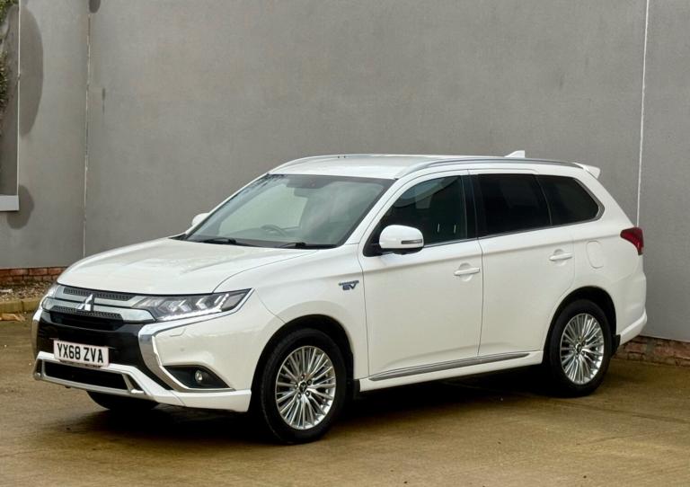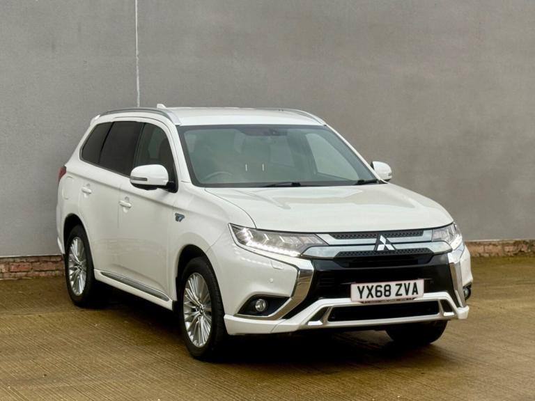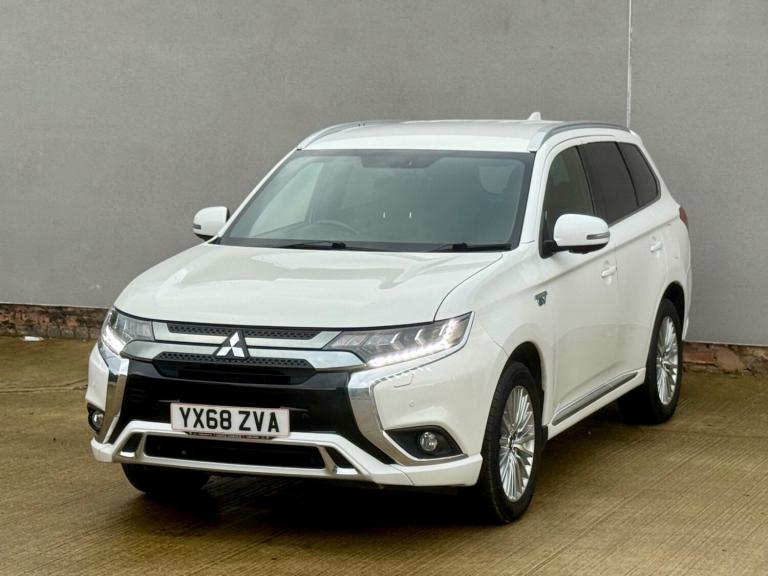 This 2018 Mitsubishi Outlander offers exceptionally low mileage for its age, having covered just 58,090 miles with full service history, last serviced at 57350 miles, 8 stamps on book, mot till oct 2026, nationwide RAC parts and labour warranty available, 12 months free breakdown cover, nationwide delivery, This particular example is the h TwinMotor 4h variant, featuring a 2.4 litre petrol plug in hybrid engine and Four Wheel Drive capability, all meeting the Euro 6 emission class. It comes equipped with LED headlights that automatically adjust their level, a Bluetooth system for music streaming, and Apple CarPlay support for seamless smartphone integration, full leather seats, heated seats, reversing camera with parking sensors, 4 x continental tyres, cruise control. Comfort is enhanced by dual climate control air conditioning, and convenience is provided by the keyless operation system. The Mitsubishi Outlander stands out with its advanced technology and practical features. The combination of a plug in hybrid powertrain and Four Wheel Drive offers an efficient and capable driving experience, setting it apart from many other vehicles in its class. The inclusion of LED headlights, dual zone climate control, and the keyless entry system further elevate its appeal, providing a refined and user friendly environment for both driver and passengers.Part exchange welcome, any independent inspection welcome, metallic white colour, mint condition inside and outside, clean alloys, first to see will buy the car. Any questions please contact us.