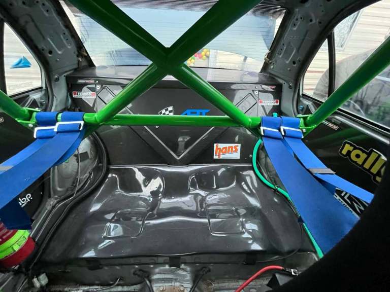 - Full Roll Cage: Professional bolt-in cage finished in high-visibility bright green.