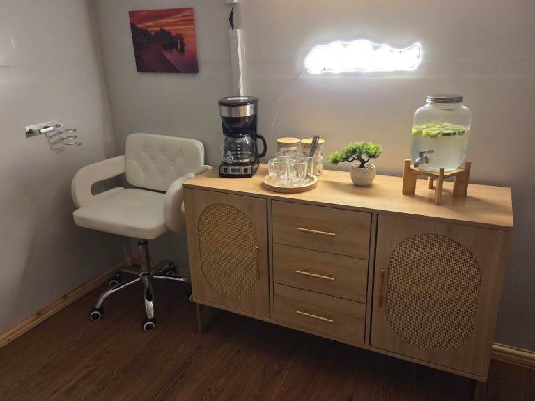 In the Spring/Summer my clients will have the option to sit outside with refreshments while they wait for their treatments to process.
