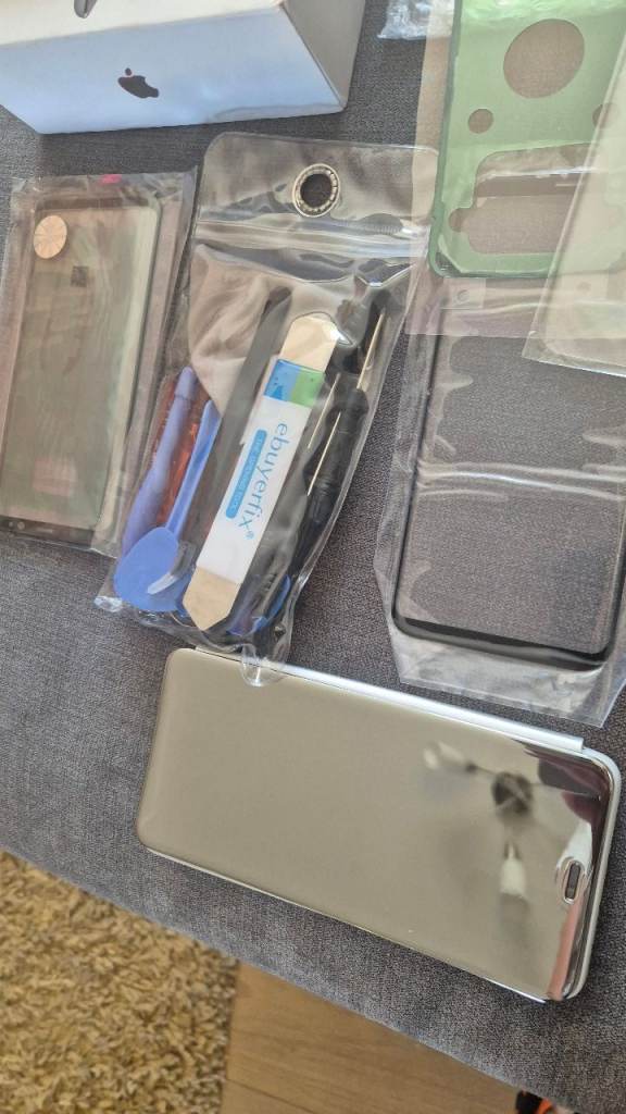 2 x iPhones, samsung chasis, Galaxy S8 box, fitting kit, various glasses and screen protectors, 46mm smart watch case. Mixture of new accessories and old devices. Collection from NG9