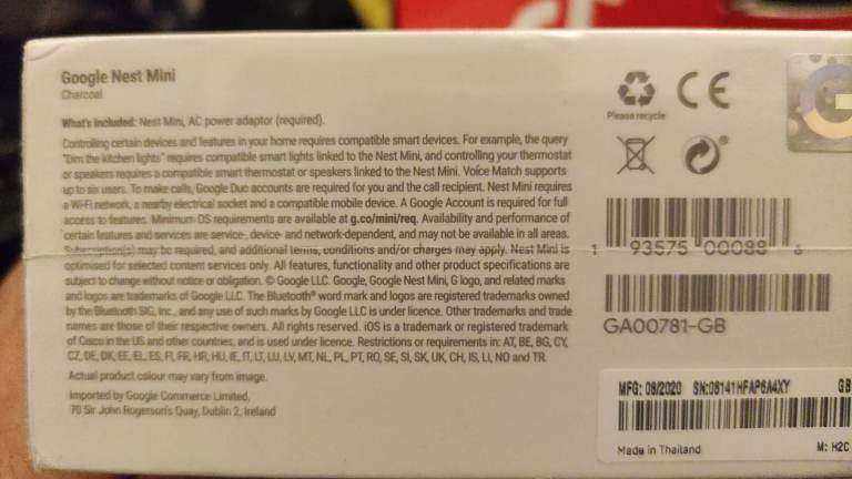 2nd Generation google nest mini, charcoal. Never opened, still in its original box and cellophane. Tiktok box as this was a company gift.