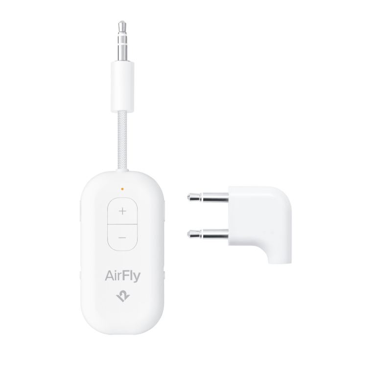 AirFly Pro Deluxe Edition includes a beautifully designed international airline adapter and a handsome travel pouch with room for your AirFly Pro, charging cable and international adapter.
