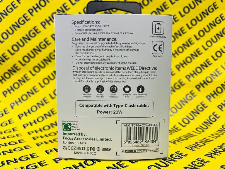 ANG UK Mains Fast Plug PD 20W + Type c to Lighting Usb