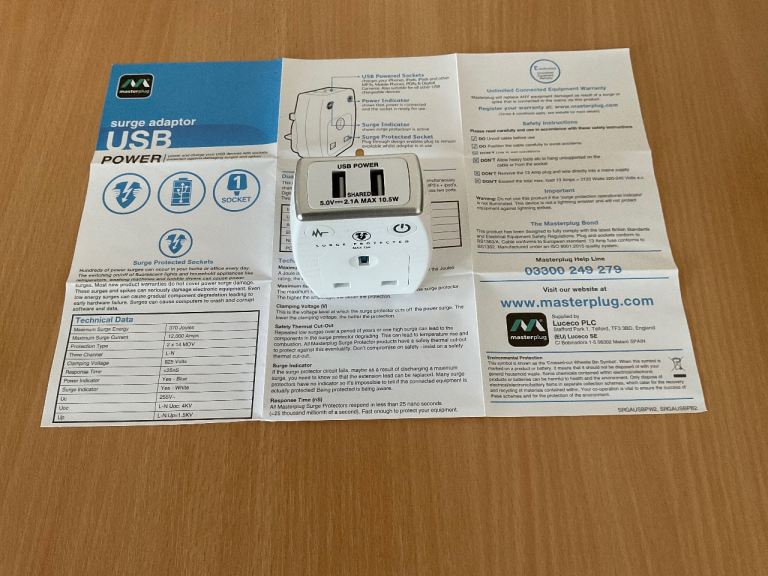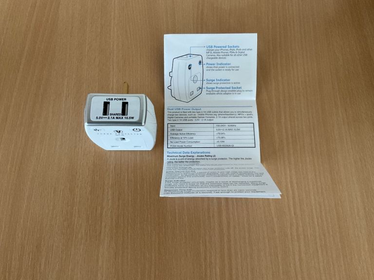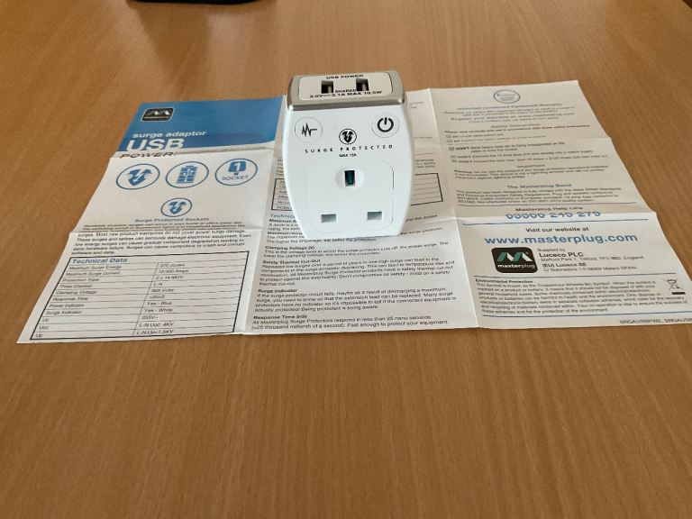 Master plug double USB Power Surge Adapter ( used ) + brand new unused iPhone charging cable