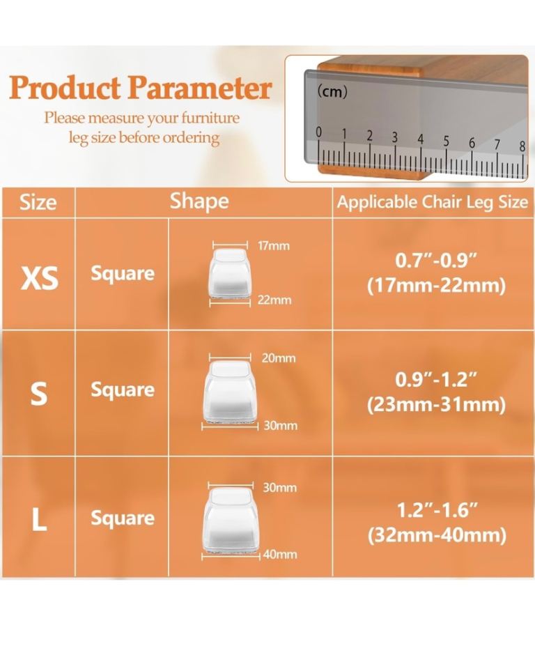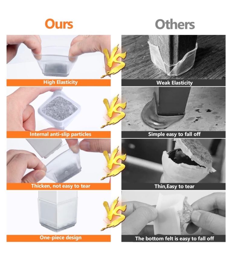 35pcs Chair Leg Floor Protectors Square, Silicone Chair Leg Caps with Felt Pads, Furniture Feet Protectors for Hardwood Floors, for Protecting Floors from Scratches(Large)