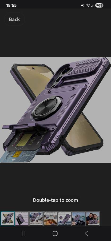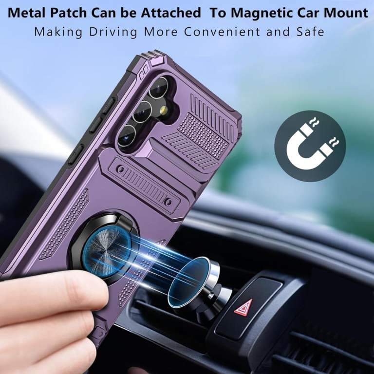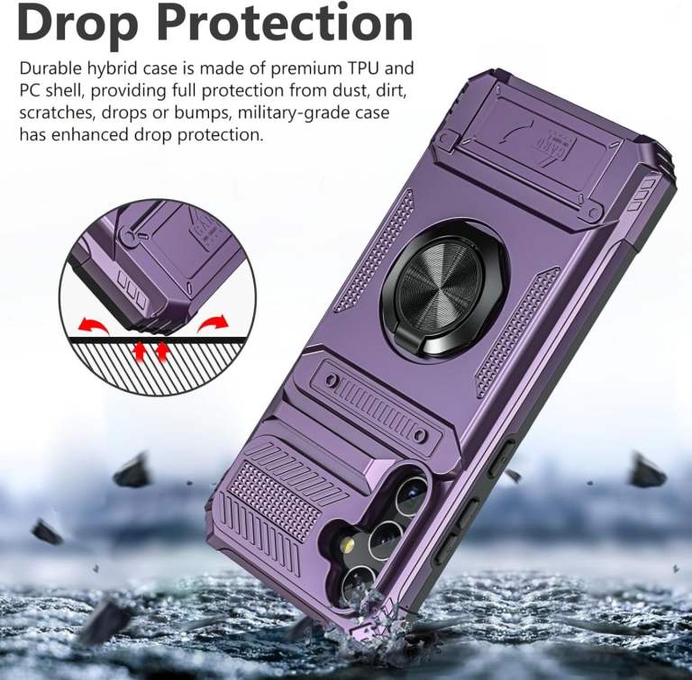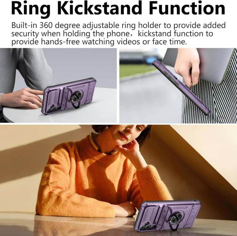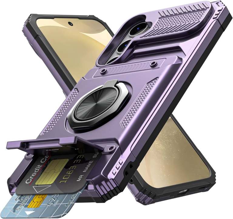 Coolden for Samsung S24 Case with Card Holder [Max 2 Cards] Ring Kickstand Shockproof Military Grade Heavy Duty Protective Cases Wallet Phone Cover for Samsung Galaxy S24 Case-Purple