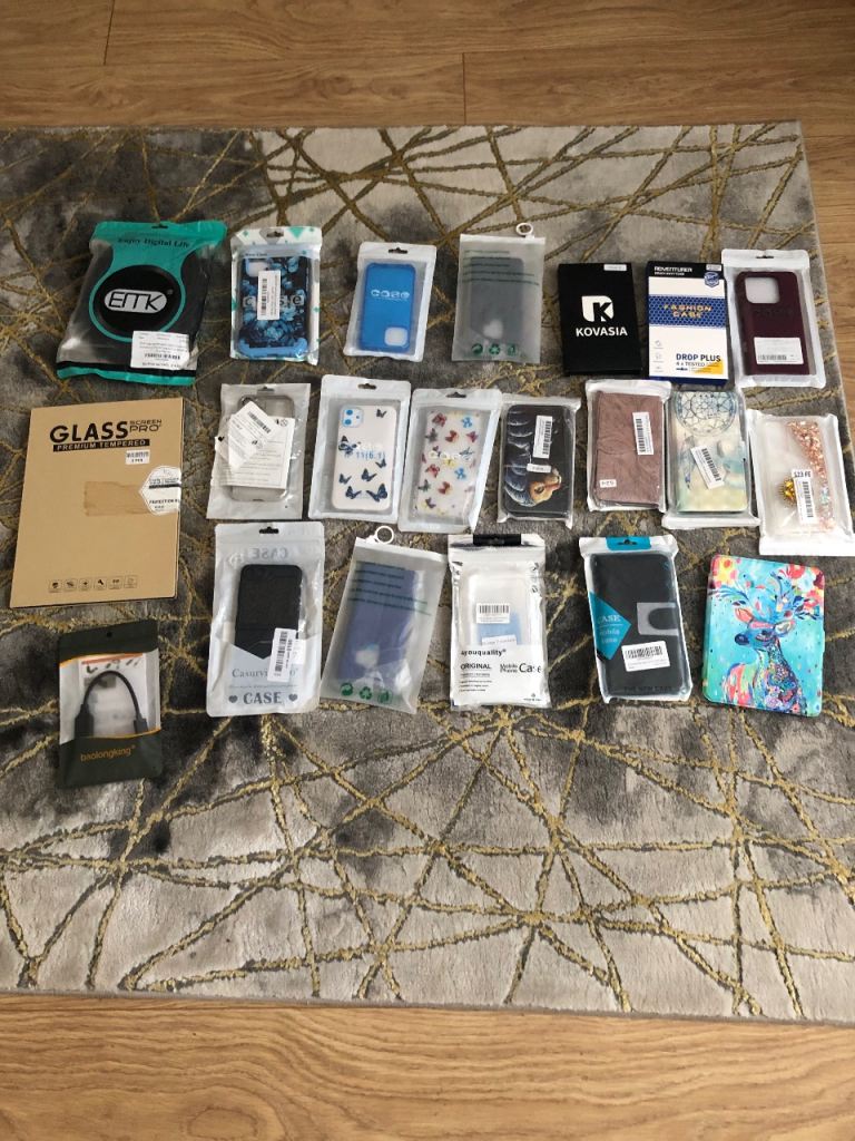 Job lot of phone cases and glass screen protectors for various phones all brand new and packaged
