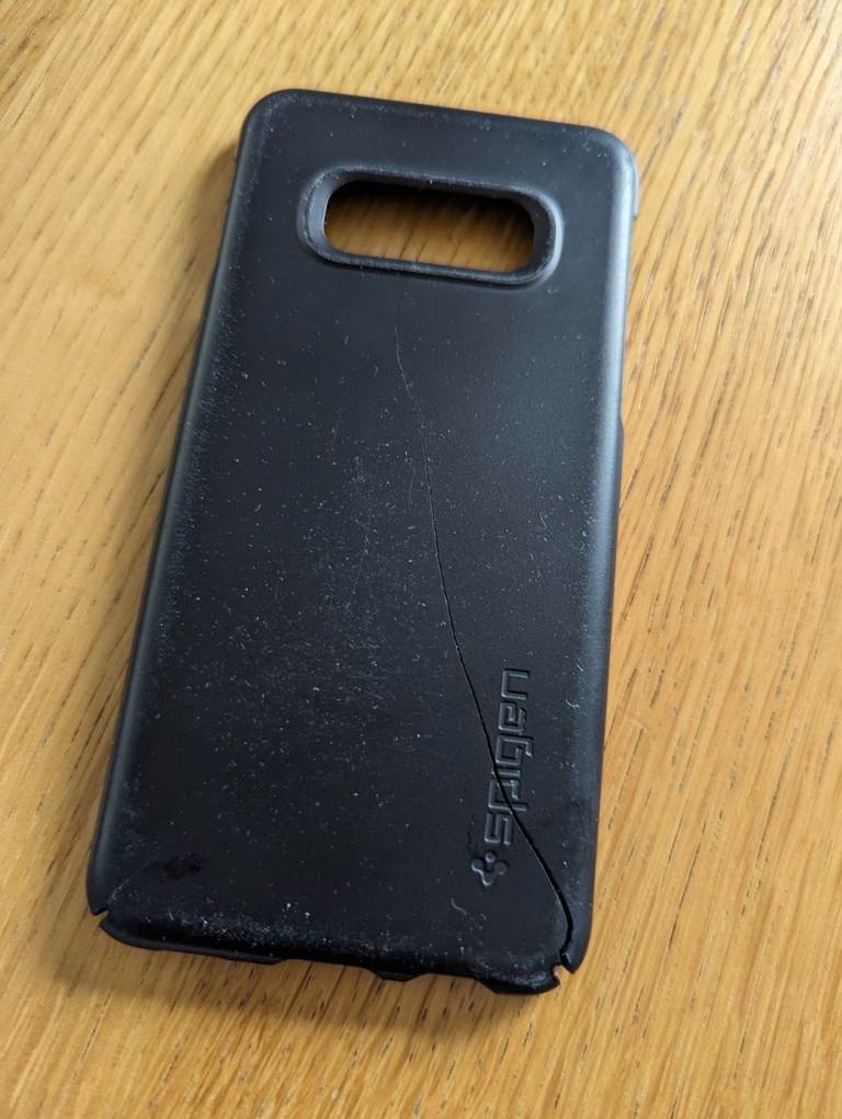 Used and does have a crack in it, but still fits the phone and works fine.