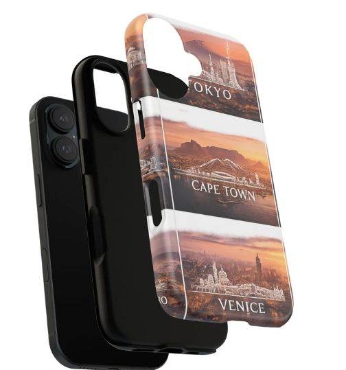 Carry the world in your hand with this protective phone case that mixes durable engineering with soft, travel-worn charm. The dual-layer build cushions against drops while a smooth TPU liner soaks up shocks. A full 3D wrap print shows stacked cityscapes—Tokyo, Cape Town, Venice—in warm sunset tones that age beautifully when cared for. Weather-resistant inks and UV protection keep the colors rich through everyday use, and the slim profile keeps wireless charging accessible. This case feels like a little travel journal you can tap open whenever you need a moment of wanderlust.