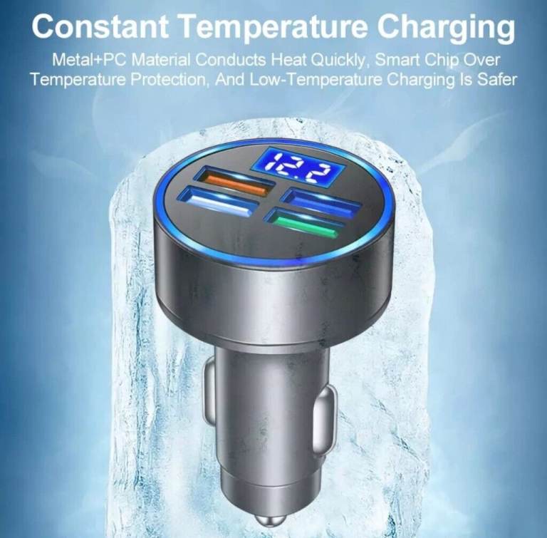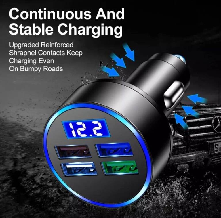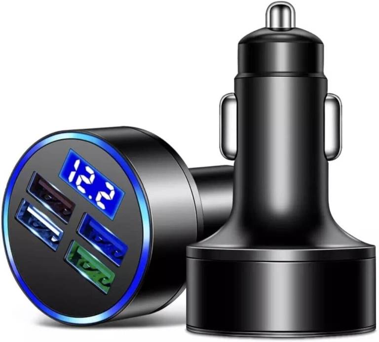 4 USB LED Display Car Charger Socket, 4 Port Fast USB Car Charger Adapter Cigarette Lighter USB