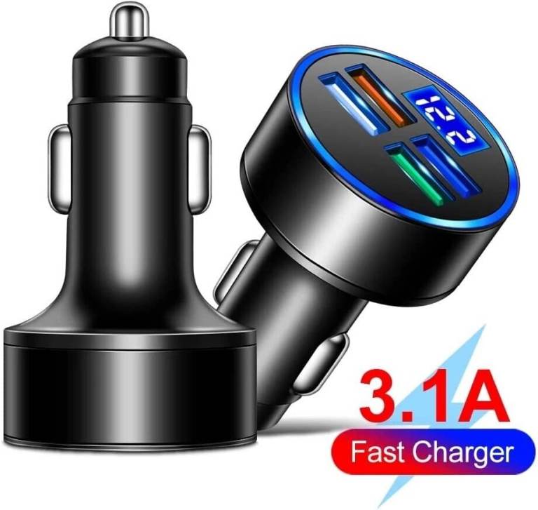 Universal 4 USB LED Display Car Charger Socket, 4 Port Fast USB Car Charger Adaptor Cigarette Lighter USB Car Smart Phone Voltage Detector Quick Charge 3.1A for iPhone, Samsung, Xiaomi, HTC, Nokia