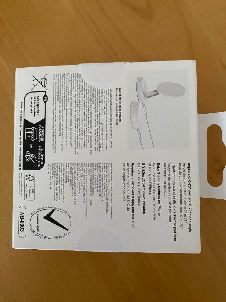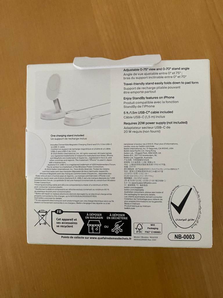 Belkin Convertible Magnetic Charging Stand. Fast wireless charging up to 15W. Qi certified, MagSafe compatible. Stand folds down into a pad. One charging stand in sealed box which has NOT been opened. Bought unnecessarily £70 to buy. Cash on Collection.