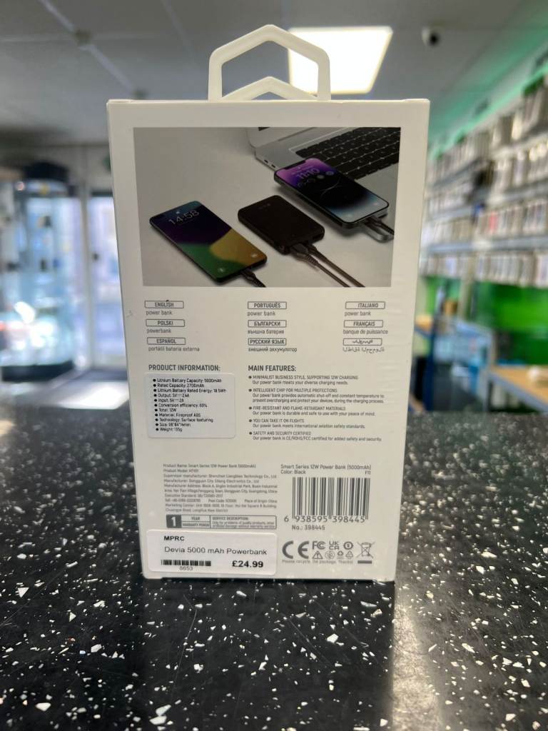 Stay powered wherever you go with this compact yet powerful Devia 5000mAh Power Bank — perfect for travel, work, festivals, and everyday use!