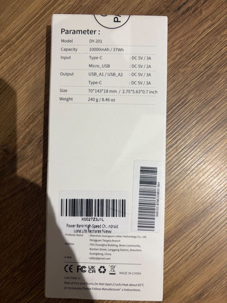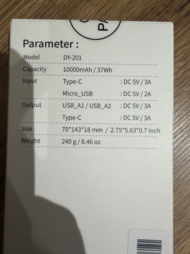 Brand new Rolosar DY-201 Power Bank, sealed in original packaging.