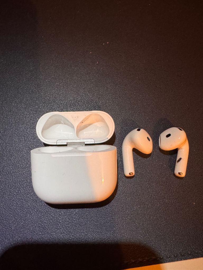 These lightly used fully working AirPods 4 feature active noise cancellation and come with the box and USB-C port.