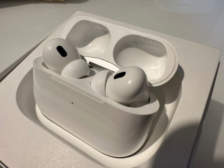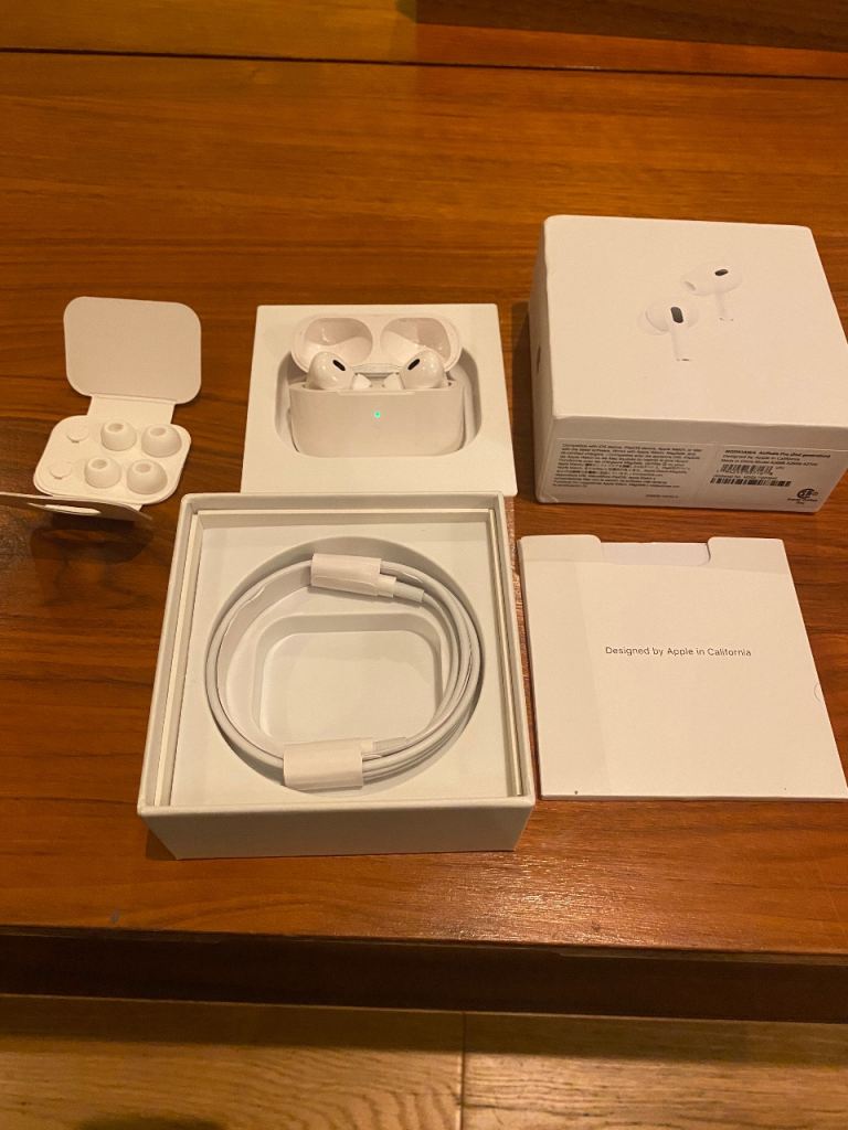 The AirPods Pro (2nd Generation) USB-C Genuine are white Apple earbuds with a double earpiece design. They are suitable for various activities like gaming, music, and work. These in-ear earbuds feature Active Noise Canceling technology, a built-in microphone, and Bluetooth wireless technology. They come with a USB-C connectivity option and are ideal for use in different settings such as the gym, office, or while on the go.