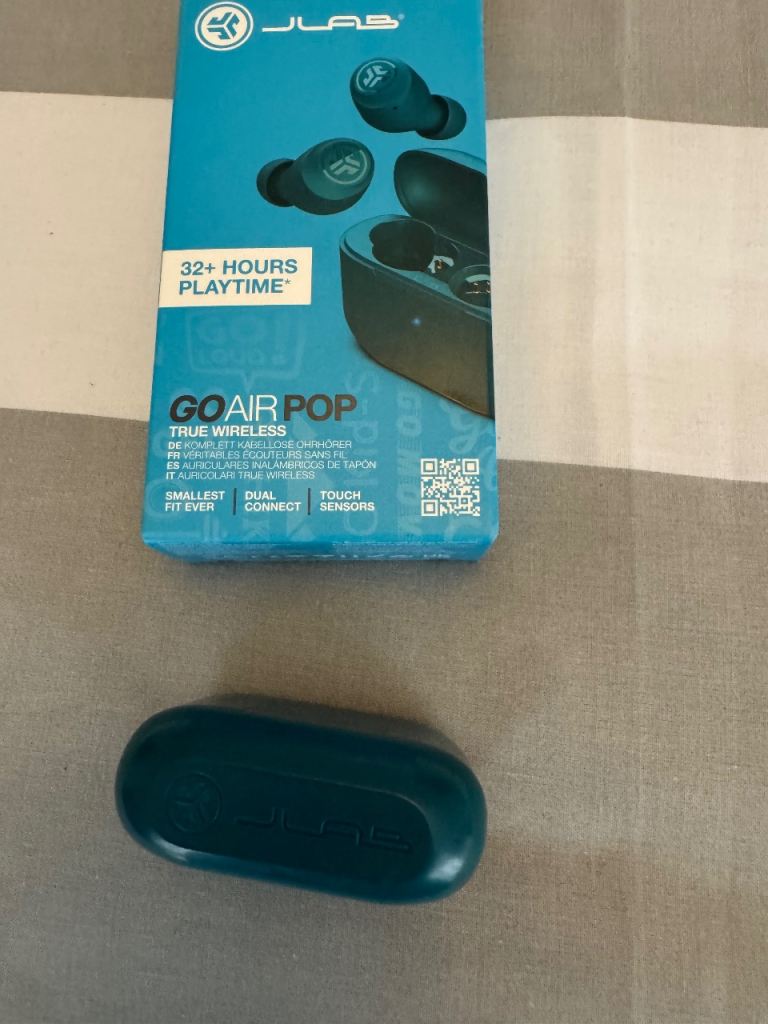 Jlab go air pop earbuds charging case with the box and instructions manual for sale