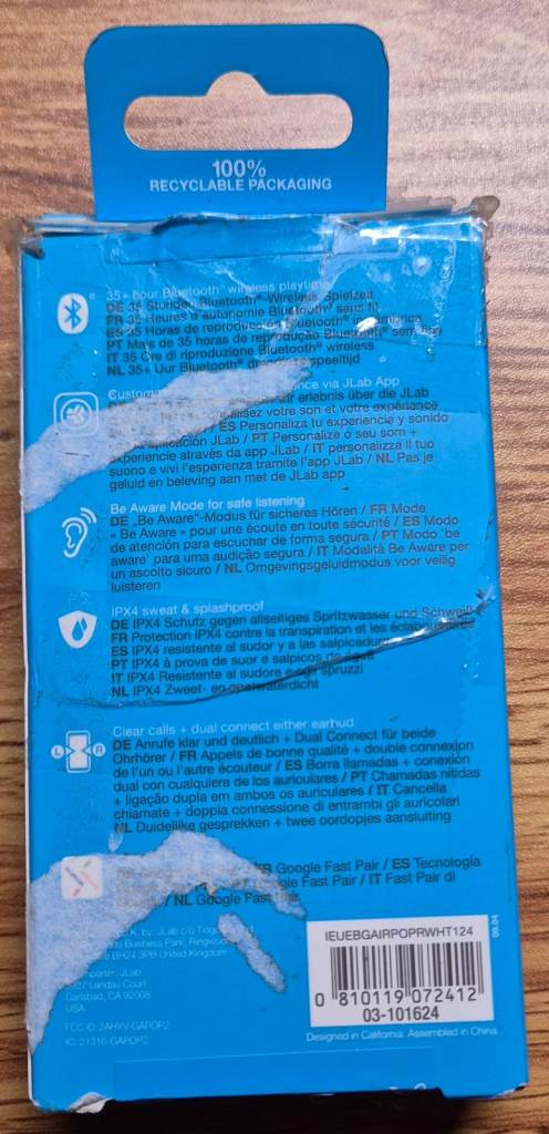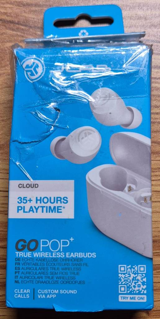 The JLab Go Pop+ Headset is a true wireless stereo in-ear headphone designed for calls, music, sports, and everyday use. With a sleek and lightweight design, this headset features a binaural ear coupling with a built-in microphone and touch control for easy use. The charging case provides a portable and convenient way to store and recharge the headset, offering a long continuous audio playback time of up to 35 hours. The stylish cloud white colour and comfortable in-ear form factor make it suitable for both boys and girls, providing a versatile and high-quality audio experience. Some scuffs on box as seen on pictures