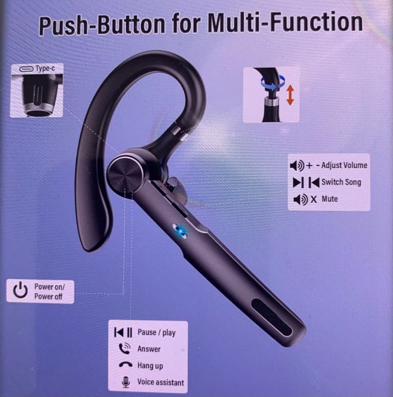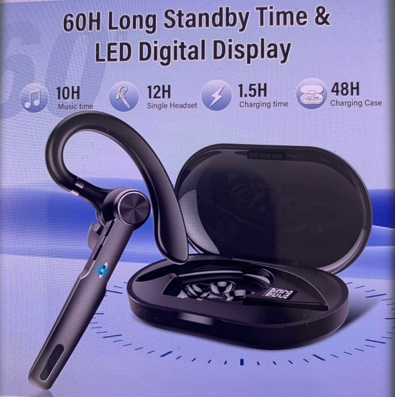 Single Wireless Bluetooth headset earpiece with LED charging case