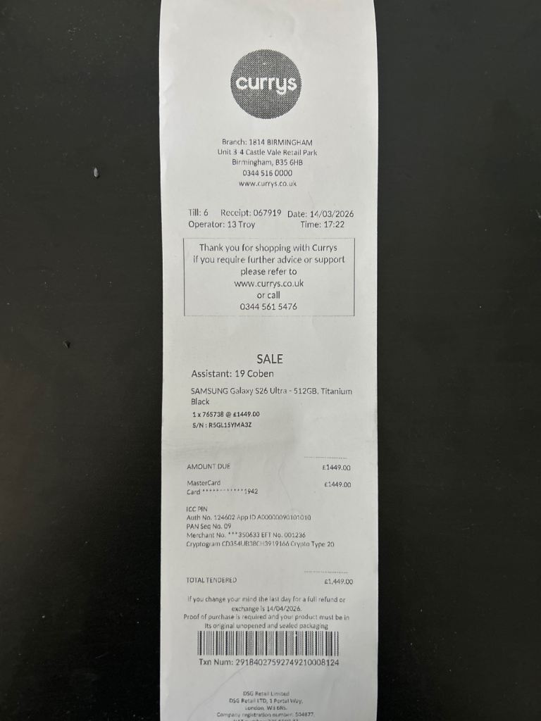 Posting for under a monthSamsung Galaxy S26 ULTRA 512GB Black