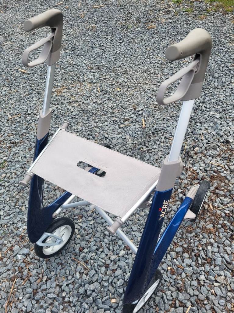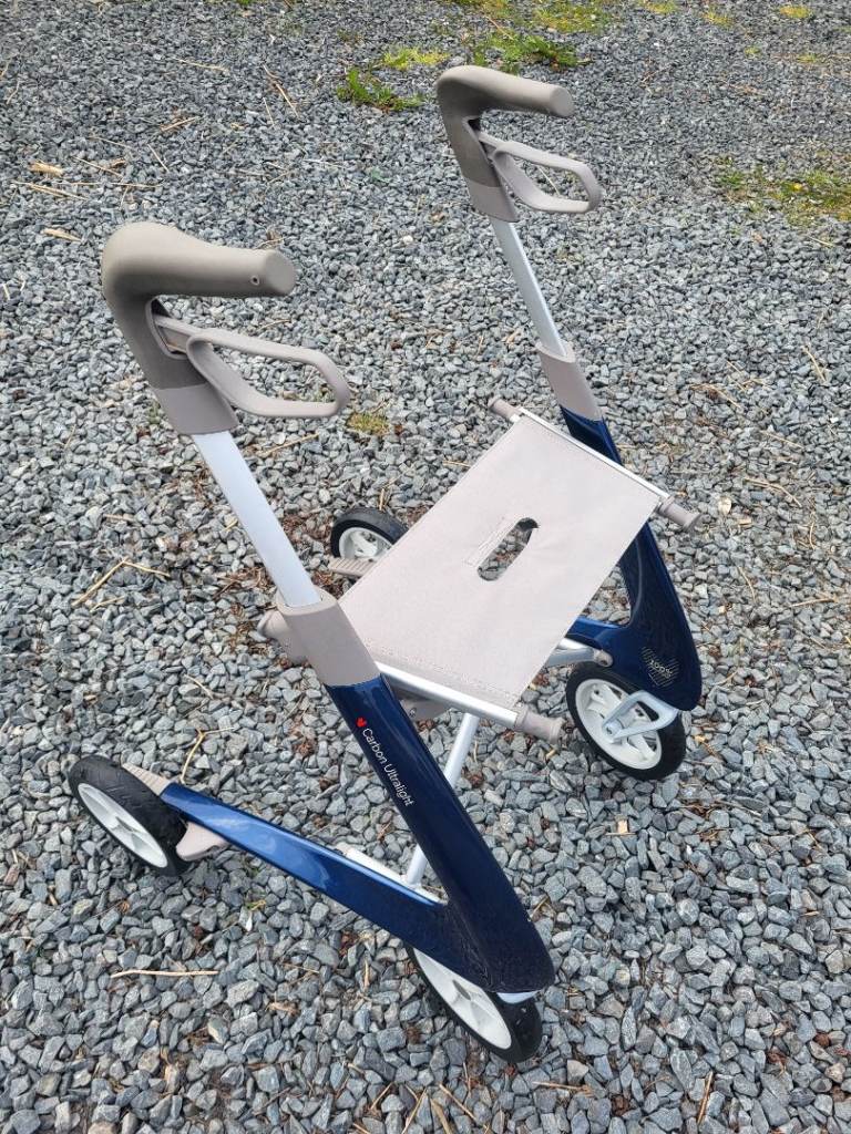 New, this Compact byAcre Carbon Ultralight Rollator cost nearly £500. It is specifically designed for a person of smaller build who would find the weight of standard metal rollators burdensome.