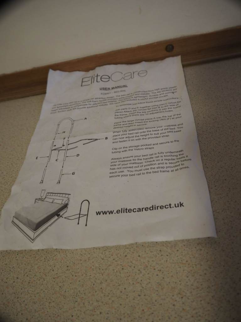 (E) Elite Care Safety bed rail mobility aid adjustable in height with useful storage pocket
