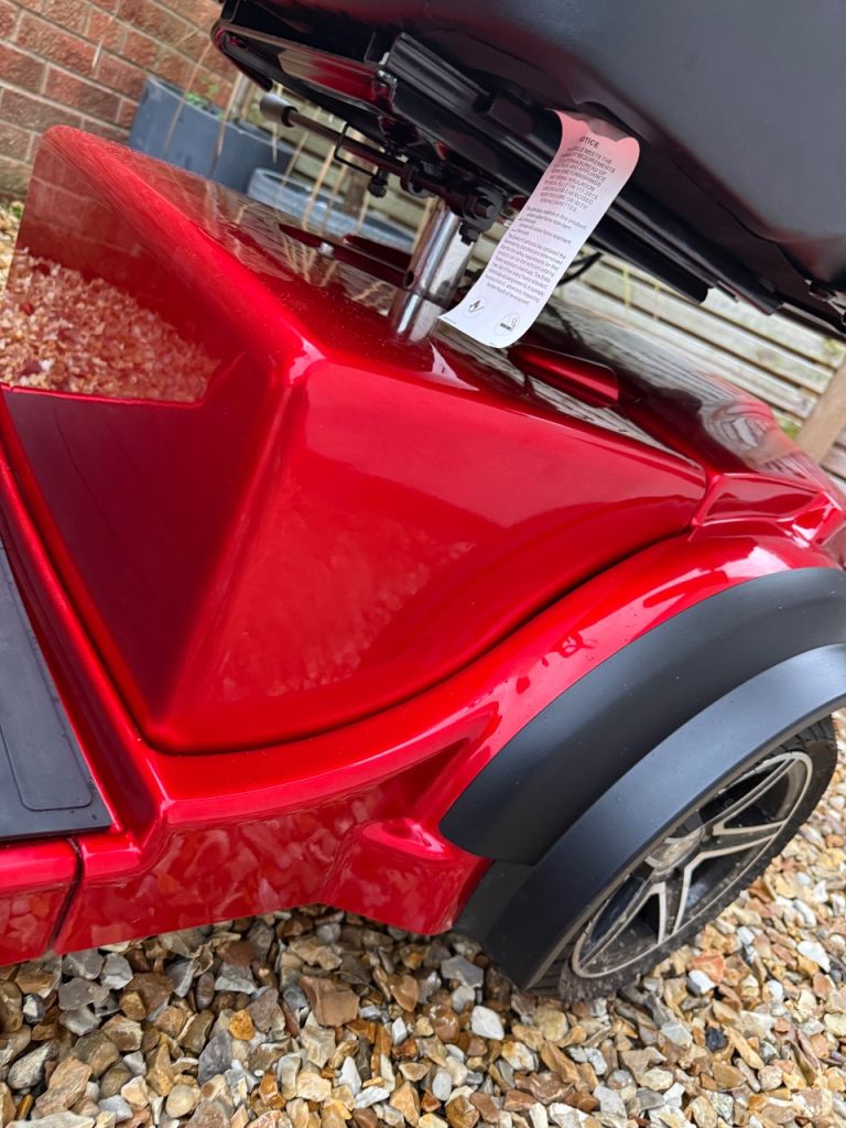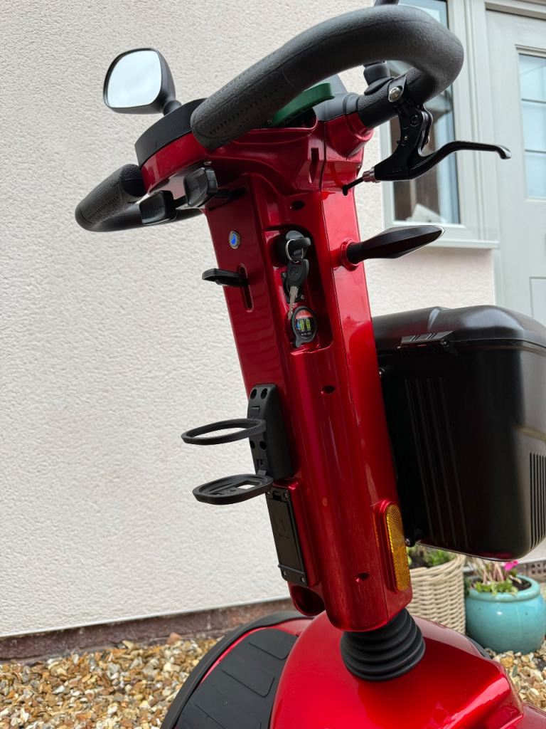 A fantastic Ignite Mini mobility scooter presented in beautiful condition and finished in a striking red. This scooter has been professionally prepared and is ready to go, making it ideal for everyday use, shopping trips, and travel.