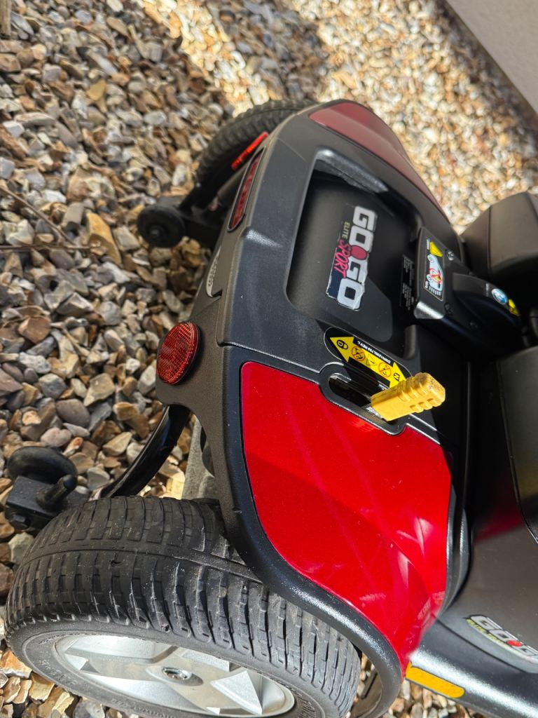 This is a Pride GoGo Sport finished in bright red, presented in great condition and fully checked over to ensure smooth, reliable performance. The GoGo Sport is a very popular transportable mobility scooter, designed to be easily dismantled into manageable pieces for storage or transport in a car boot.