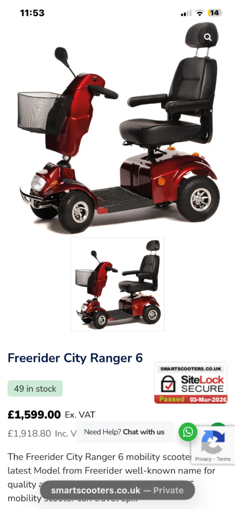 Ideal for shopping trips, days out, and everyday independence, this compact scooter offers excellent manoeuvrability while still providing a comfortable and stable ride.