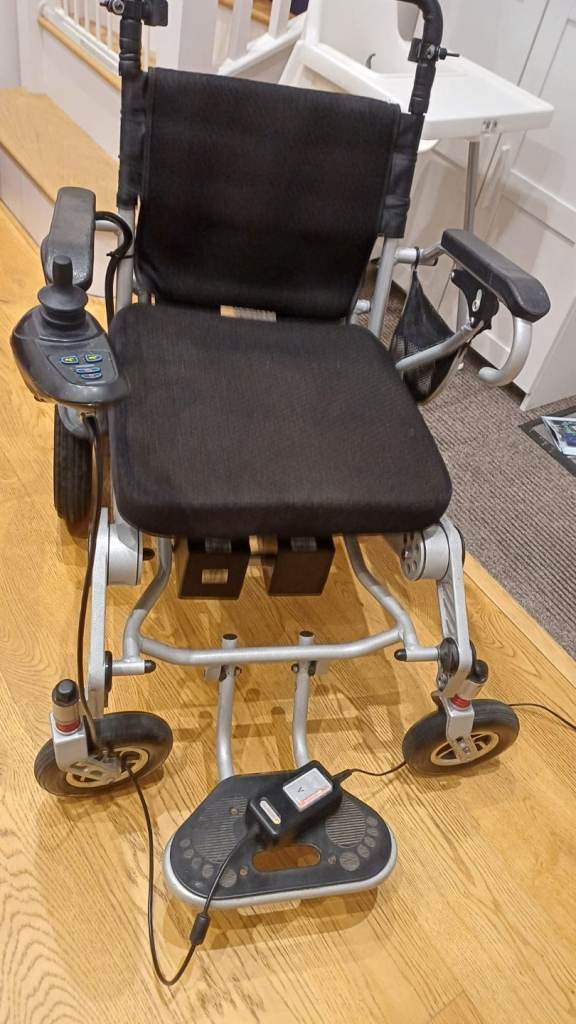"Mobility Plus" foldable electric wheelchair. Comes woth lithium airline friendly battery and charger.