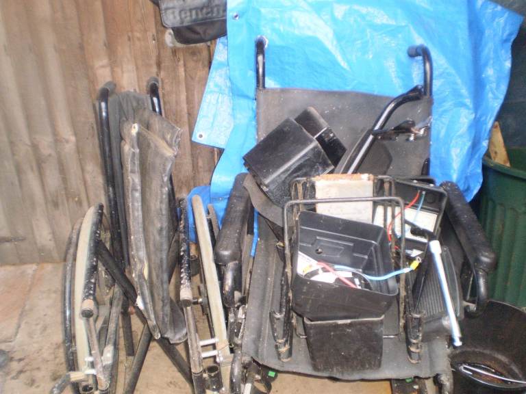 2 x Wheelchairs 1 Electric all parts and 1 folding manual wheelchair been stored for spares or repair collection asap £25