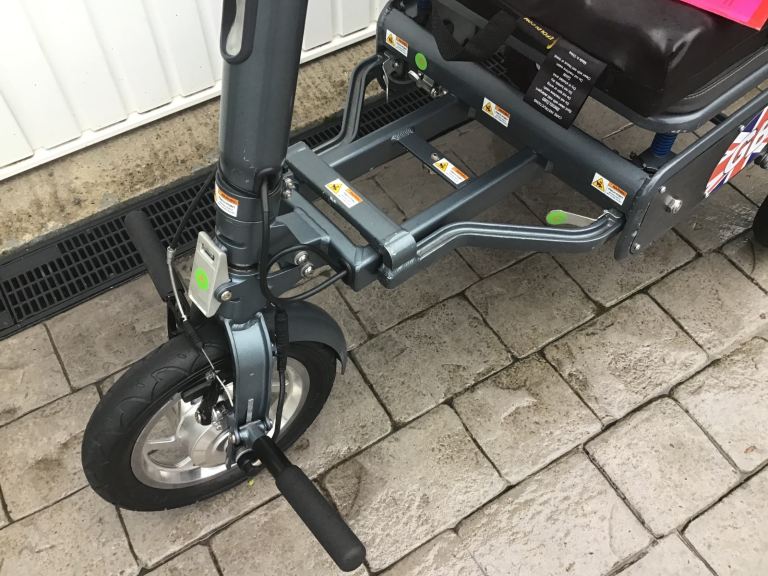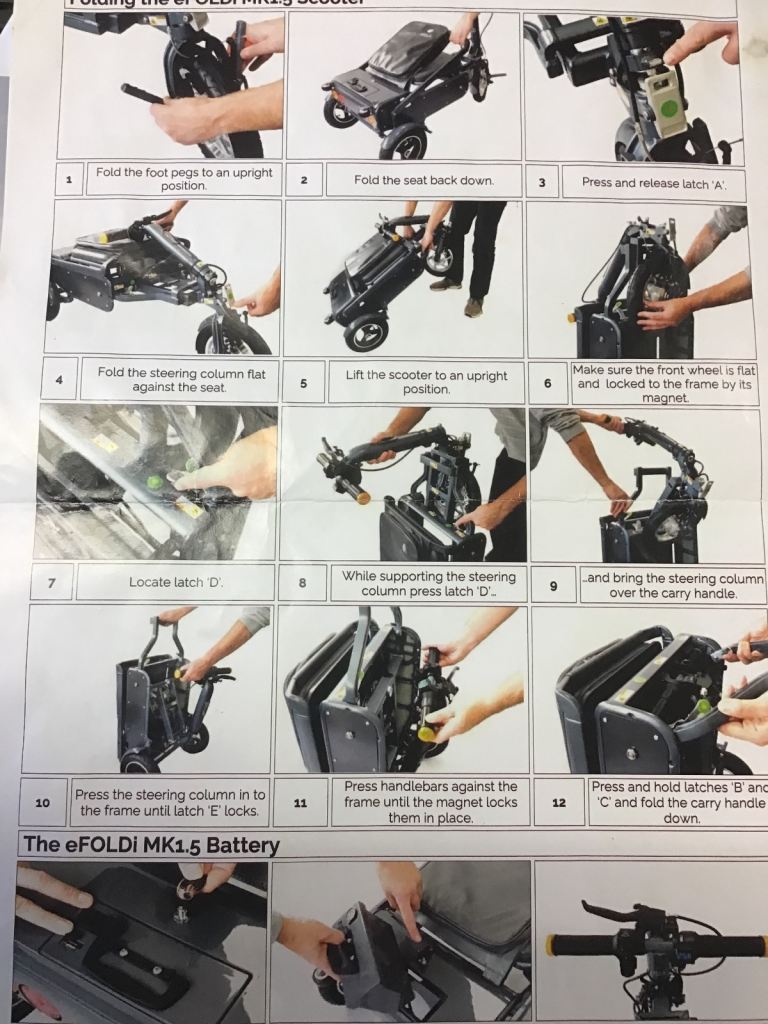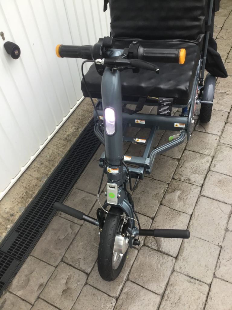 This is an Efoldi Explorer Mobility Scooter designed by Richard Branson and is a lightweight design, only weighs 17kg and fold up small to fit in the car, also airline and cruise liner approved to take on your holidays.